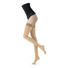 Sheer and invisible stay-ups, in 15 deniers, with an opaque look. The flounce, 6 cm high, is in lace, elegant and feminine. The two silicone strips inside guarantee a perfect seal. Special care is needed for these lingerie items: keep the silicone clean so that the stocking stays in place. Creams and powders could reduce the clinging power.